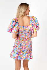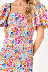 It's here! Our new favorite smocked dress! Whether you're at dinner with family or hitting the town with friends, this dress is the perfect piece. This fully smocked dress features a square neck with big statement sleeves. The fabric is a gorgeous cotton sateen that is so comfortable to wear. The Pixie Dress comes in multiple colorways! Shown here in CFD exclusive Bright Floral print. Shop all the colorways here!